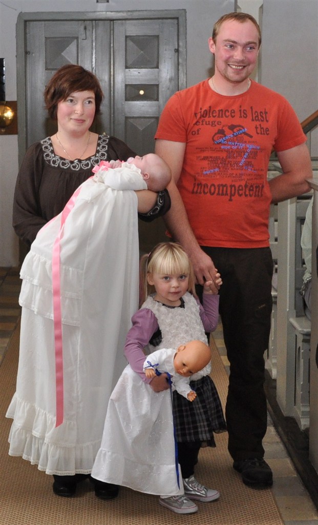 ja så blev betinna døbt 9 uger og 6 dage gammel. vi havde en skøn dag, og betinna klarede kirken fantastisk.