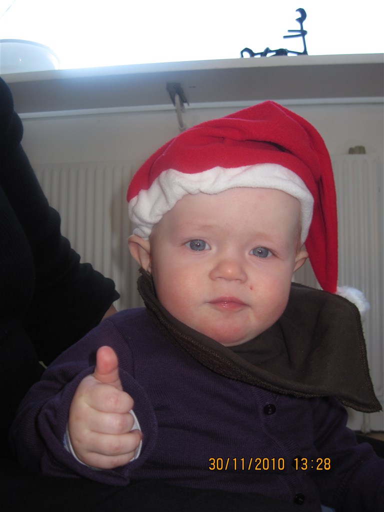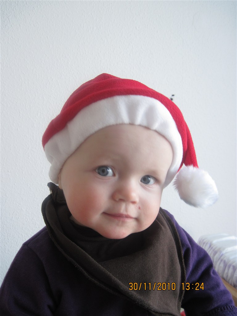 MissChrista skriver: Jep - sidder lige og er i julehumør, og så tænkte jeg om I ikke ville smide et billede op af jeres søde barn/børn på en juleaften ..Sidste år var min søn 14 dage da det var juleaften, så jeg puttede ham i det der nissetøj man kan få i Super Brugsen, Bilka osv.Anyways, her er han sidste år .. I år skal han vidst ha' en skjorte og nogle søde bukser på