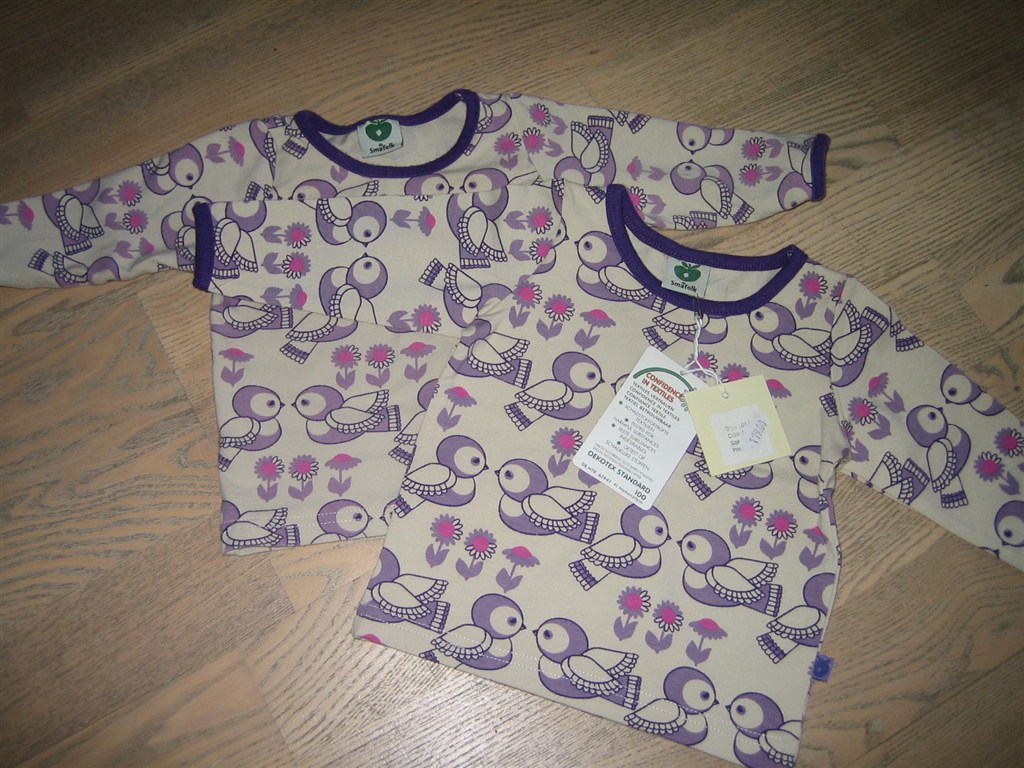 Småfolk bluser med duer. str 62. Den ene er helt ny med prismærke, den anden er vasket 5 gange. Nypris 179.