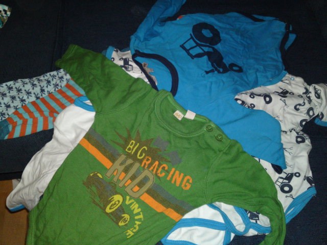 Baby-Blue skriver: Bodyerne på billedet er solgt, men har så dem her også: Str 74-80 og der er 6 stk Så er der juledragten Str 74 Smider lige trøjer og bukser i en anden tekst