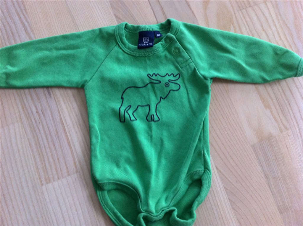 Obs. Grøn body med elg er str. 50, ellers er det meste 62