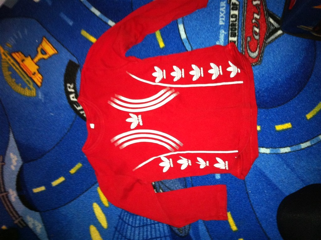 Og det er den røde adidas bluse og de molo bukser der er foldet op forneden ?