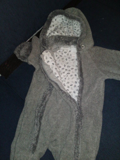 Dejlig blød og nem at ligge barnet i, kan lukkes i fødder og hænder