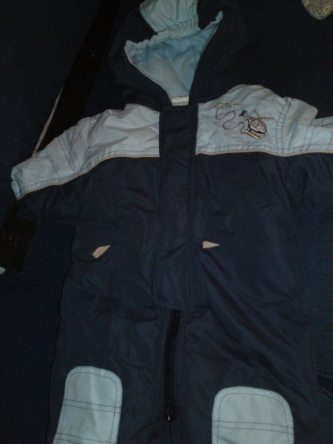 Dejlig bevægelig flyverdragt i str 62, medfølger luffer med snor så de sidder gennem ærmerne