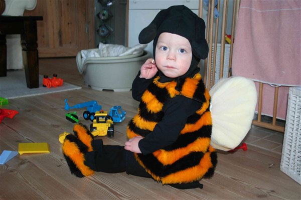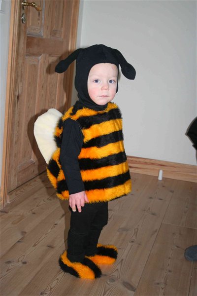 Forresten, glemte at skrive til dig, at du kan vaske hele bi-kostumet - med undtagelse af vingerne - ved 40 grader og Emil-tøjet kan godt tåle 60 grader.