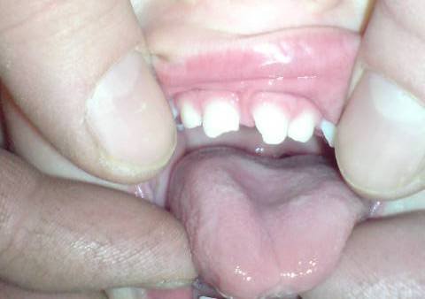 Synes ikke det er fedt hvis han skal rende rundt med de tænder til han er omkring 5 år:-S Pænt er det ikke.... :-(