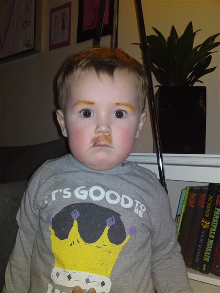 I samme ombæring skulle Rasmus også lige prøve at have øjenbryn.