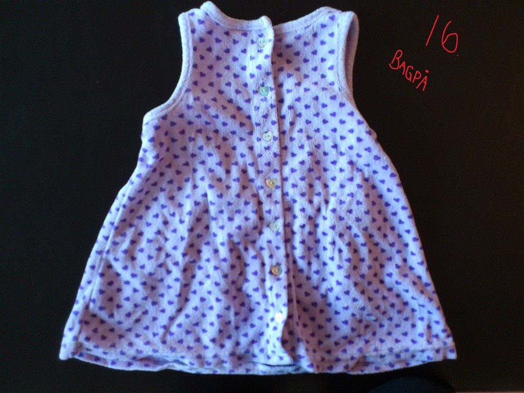 16 - Kjole fra Bilka m knaplukning bagpå, men kan også komme ned over hovedet uden problemer. Str. 80 // brug et par gange 15 kr.