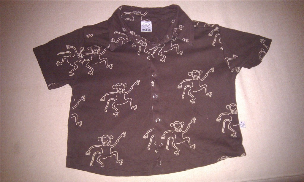 Brun kortærmet skjorte med aber fra Ida T, brugt 2 gange. str. 92