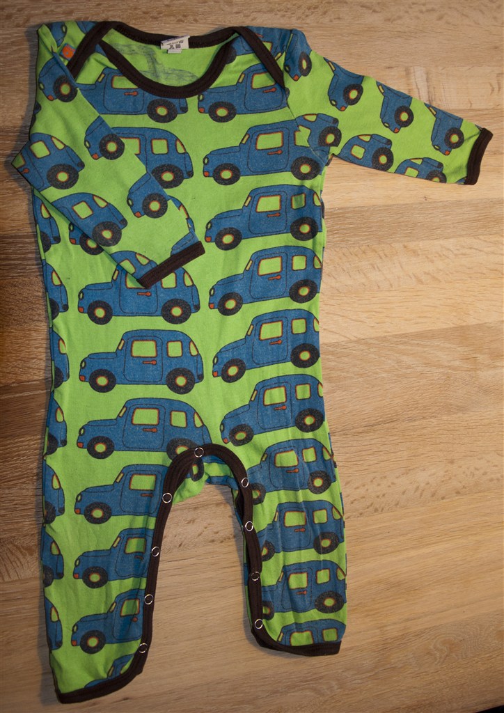 Billede 6. Closeup af småfolk Heldragt str 74 den er fnuldret. vaskefnuller. som det ses på billedet..