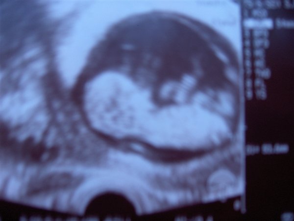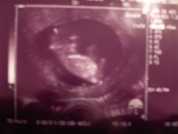 Anywho - Ham den første scannede lidt videre. Min mor var så pinlig at spørge hvornår man kunne se kønnet på den og han sagde at det kunne man ikke før man var lidt længere henne.. Eller... vent lige lidt... Jeg synes der er noget der blafrer mellem benene på den, og det er ikke en hånd eller en fod!