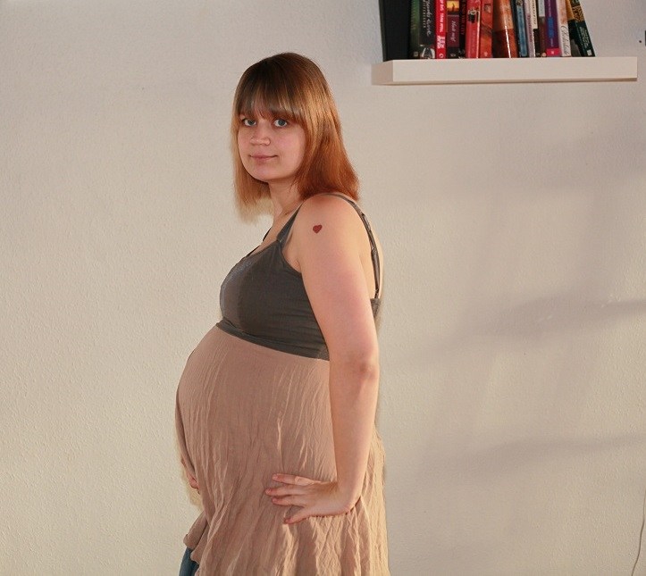 Men den er da endelig blevet pæn og rund, og selvom jeg synes det kan være lidt svært at se, så er jeg ret sikker på at den er faldet lidt - i hvert fald får jeg næsten ikke halsbrand mere (har lidt af konstant halsbrand i knap 3 mdr. nu) og jeg har fået flere smerter/pres i bækkenet.