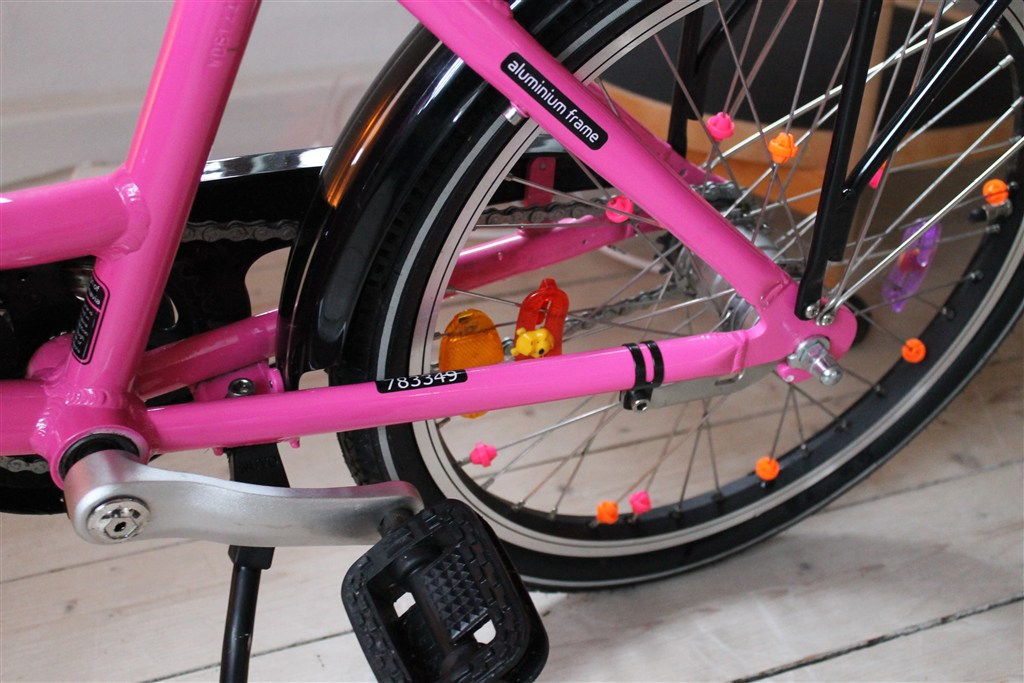 Rigtig flot pigecykel. Kirstine har næsten ikke brugt den, max. 5 gange. Den står som ny. 20". Vil sige at den passer til en pige fra 5-8 år.