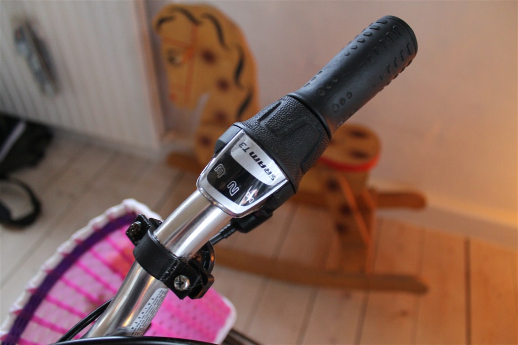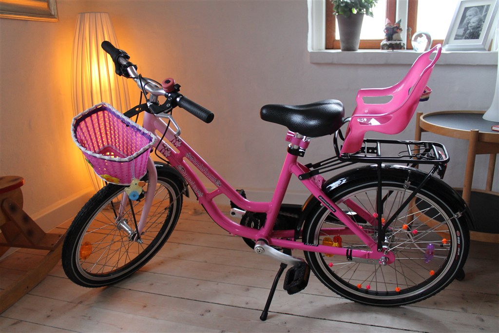 Der medfølger ekstra: dukkecykelstol, cykelkurv og de der der der klikker på egerne når hjulet drejer rundt.