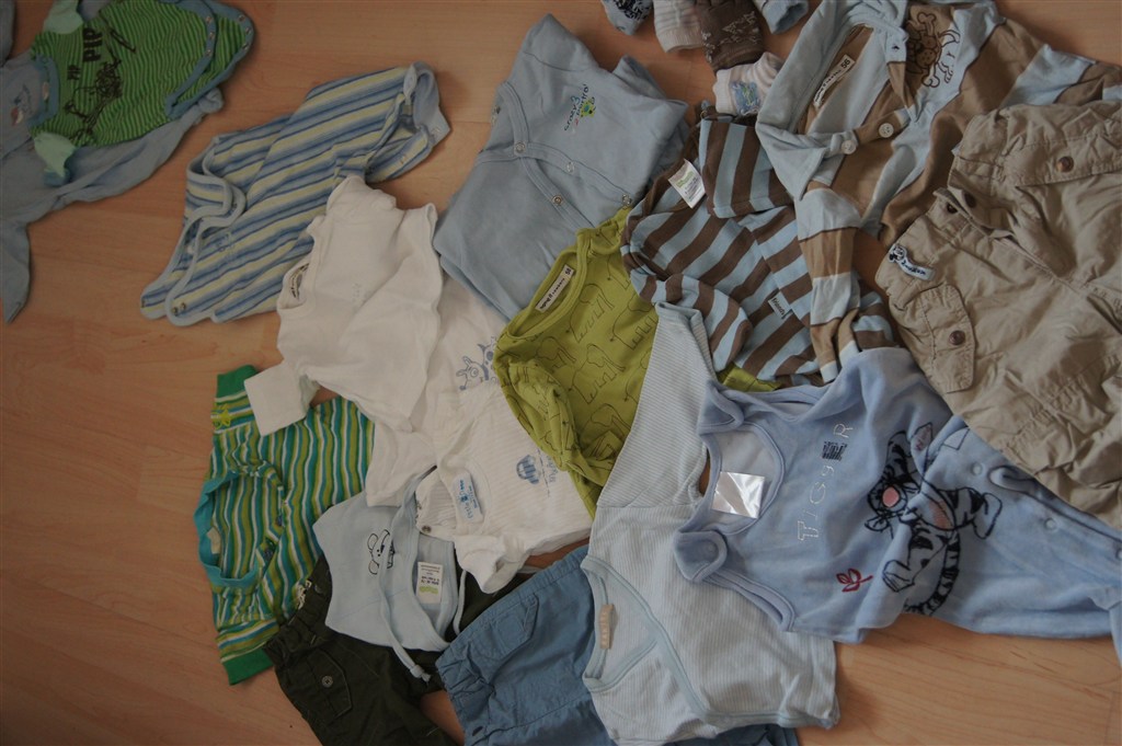 62.. 1 hue (hjelm med bamse på) 4 bukser, 2 langærmede bodyer, 1 dragt, 2 t-shirt, 4 langærmede t-shirt, 1 sæt, med bukser og trøje, 1 natdragt, og 1 cardigan, samt 1 par badebukser.. 68 har jeg lagt billeder ind ad.. str. 50 har jeg en body og en natdragt