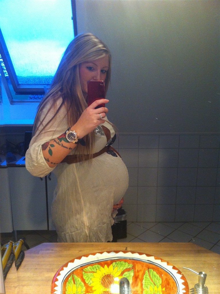 MissTas skriver: Og maven vokser. Var ved jordemoder i mandags, hvor lille pigen blev skønnet til 1300g Så perfekt hun er.