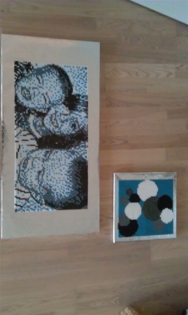 http://www.pandurohobby.dk/Catalogue/50-Skab-dekor er/5070-Ovr-Skabende-artikler/507005/1/450396-Phot oPearls-startkit-bigDu kan se og læse mere på linket over.Jeg har ikke brugt perler fra sættet, men købt hama i de farver jeg skulle bruge. Det eneste fra sættet jeg har brugt er limarkene. Disse kan købes separat jeg har selv til det lille billede brugt malertape og på brugt limpistol til at hæfte på lærredetHar givet 399 plus porto,Giv et budChristina