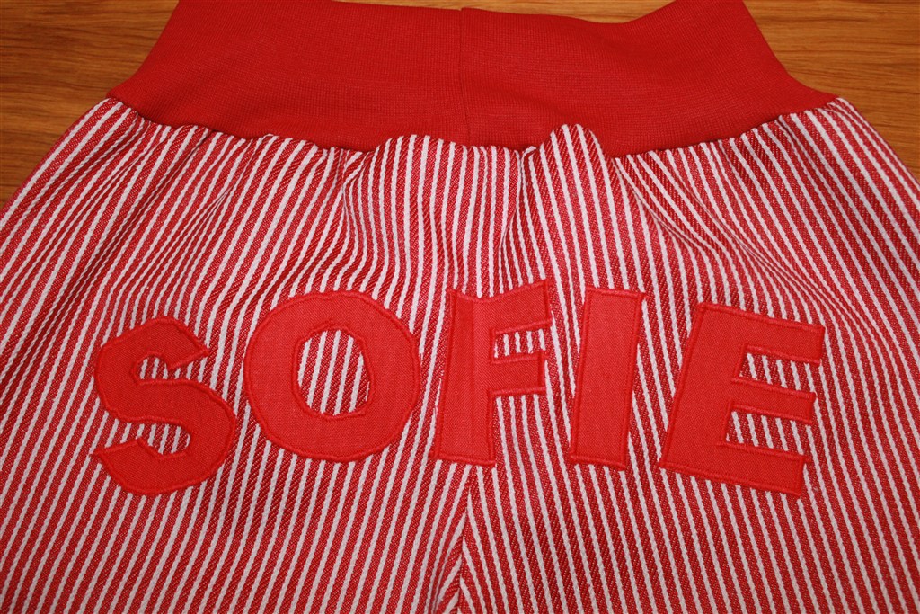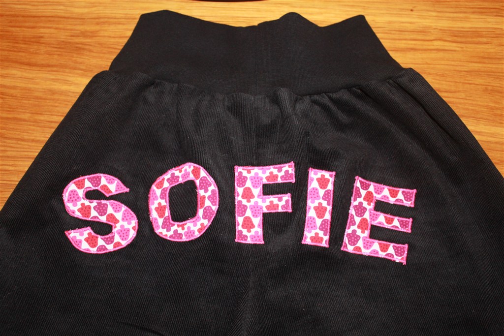 Jeg har lavet 2 par bukser str 80/86 med navnet sofie på måsen, men kunden har aldrig sendt pengene, er der nogen af jer herinde der har en datter der passer denne str 80/86 så har jeg to par billege bukser....