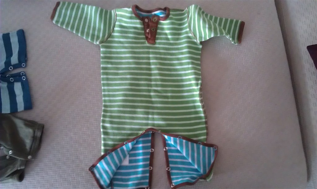 Katvig stribet dragt str 68 med korte ben og ærmer