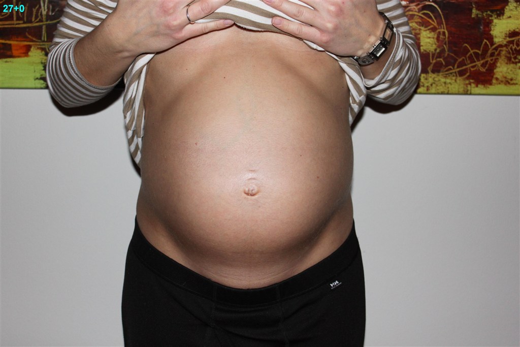 Du ligner en meget høj pige, som derfor har meget plads til baby i "højden"