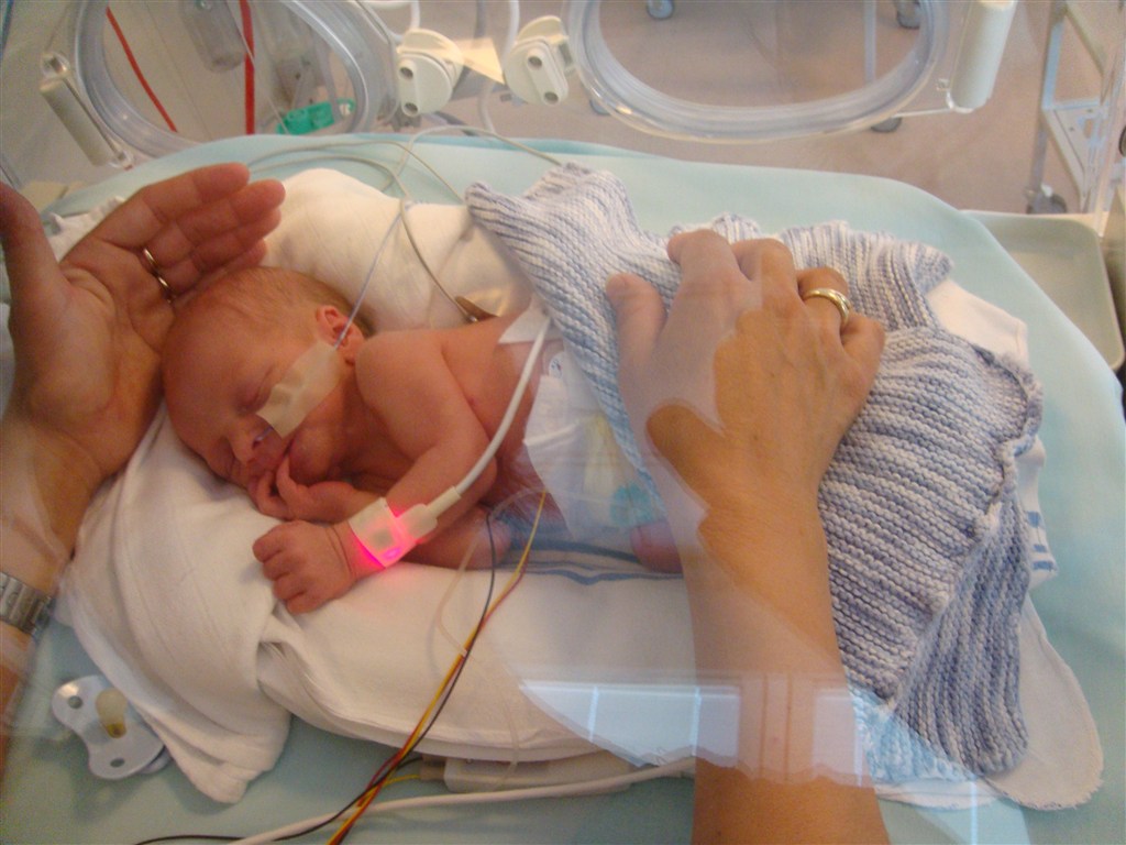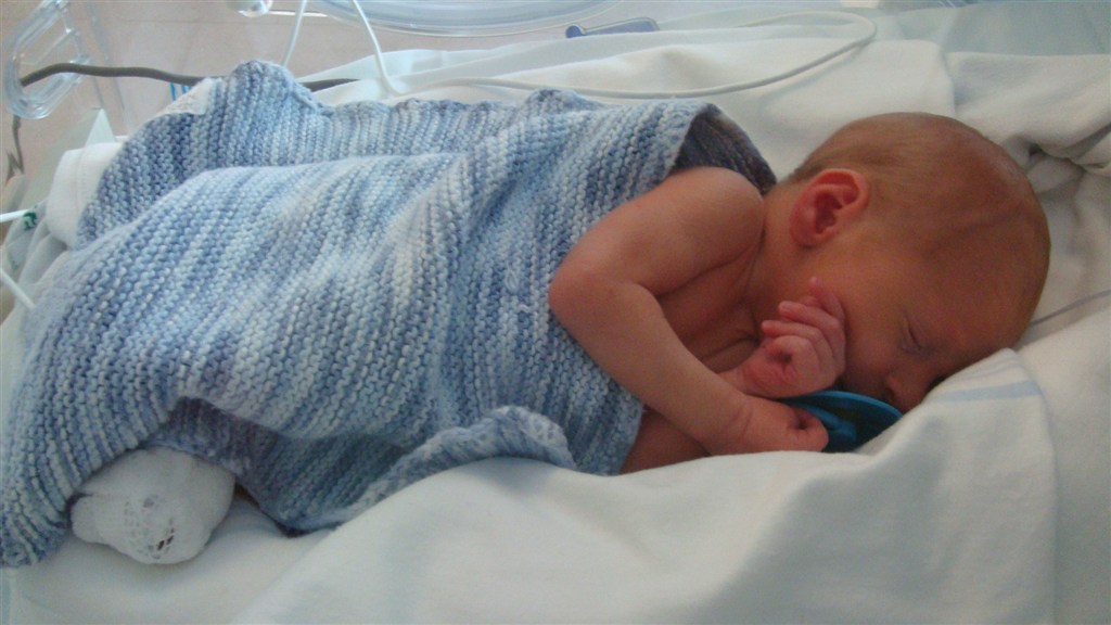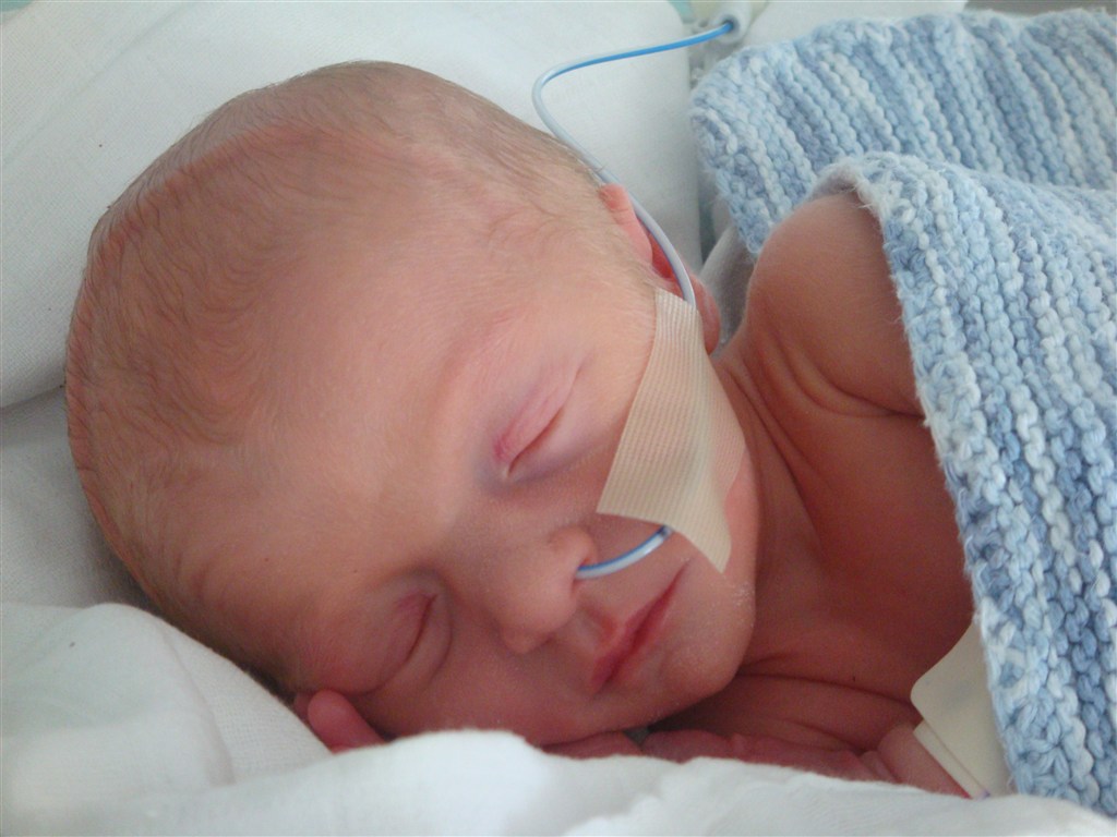 Han blev født i uge 34 og vejede knap 1800 gram og målte 43 cm.