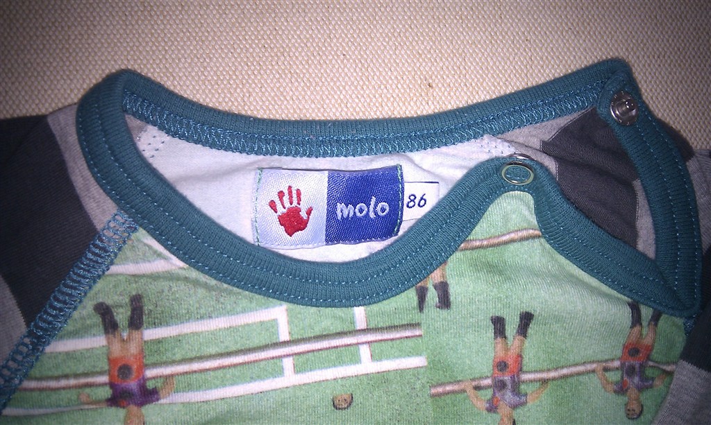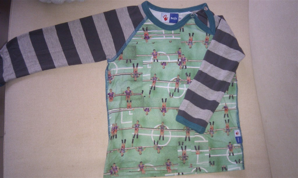 Billede 3-4: Molobluse med bordfodboldspillere, str. 86, brugt få gange.