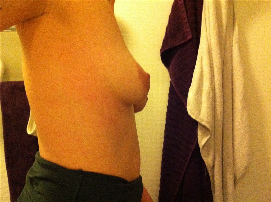 var ca en 70D før, men det var de gode bh'er med godt fyld. har ikke endnu fået en ny bh, da jeg stadig skal bruge sports bh'en, men det er en str 85C, så ved ikke hvor meget man kan regne med det. har fået lagt 325cc høj profil over musklen.