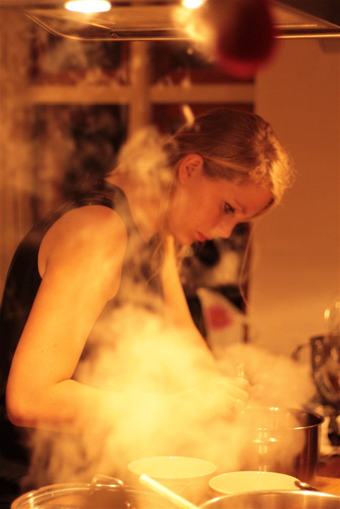 Sidder her og venter på at Kirstine kommer hjem fra hendes far. Det er d. 25 dec. og hun fylder 8 år i dag. Fra ovnen kommer der en liflig blandingsduft af lige dele gåsesteg fra i går aftes og nu chokoladekage til kagemand.