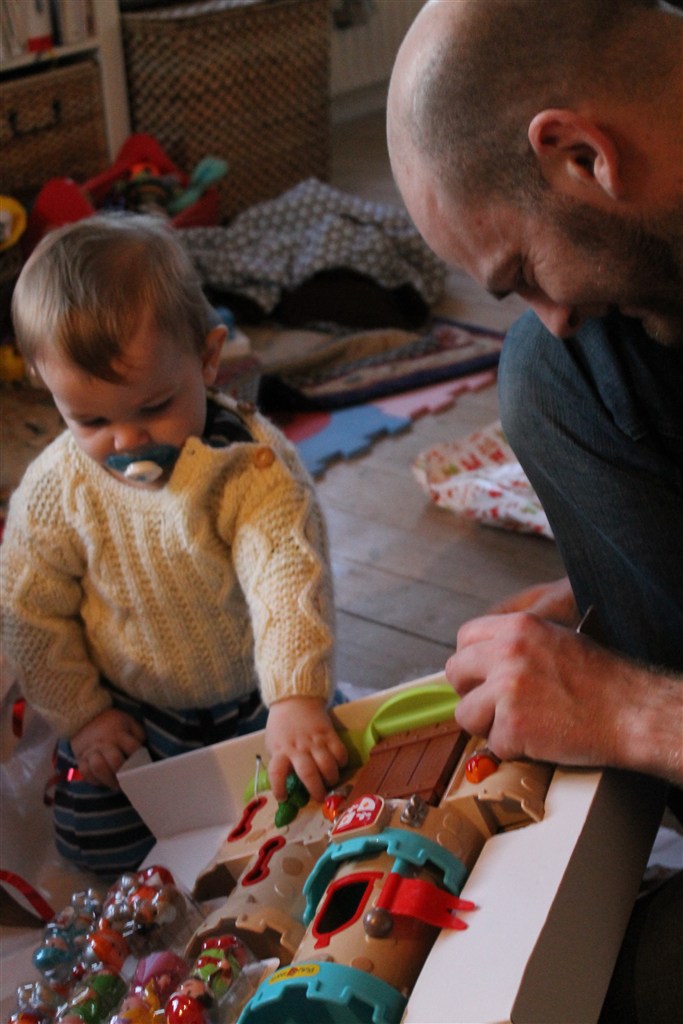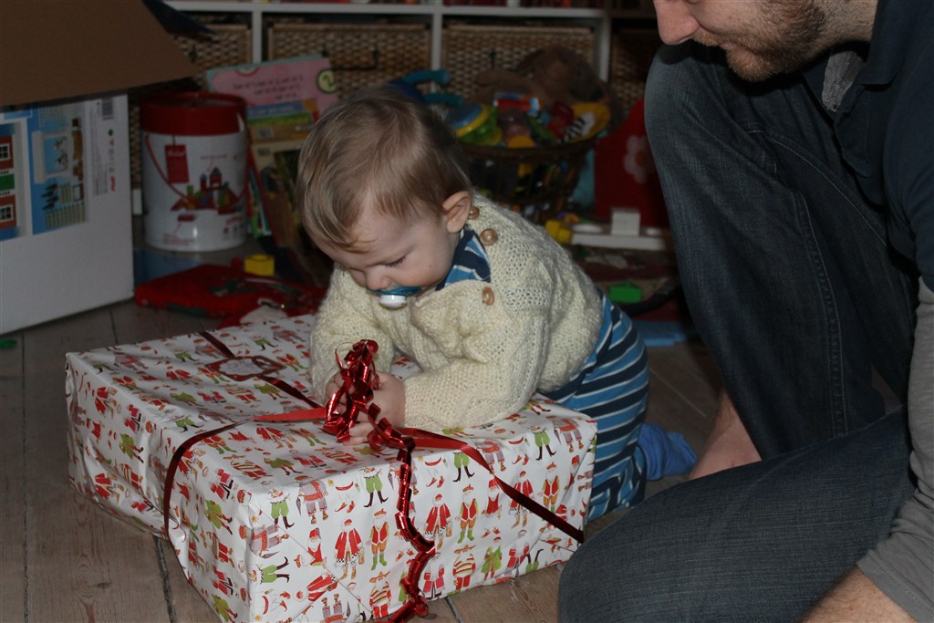 Her til morgen vågner jeg kl. 9.20. Mikkel var stået op med Richard og de legede til højlydte hvin med julegaverne i stuen. Richard ville ikke sove kl. 10, da gaverne bare var for spændende så han kom efter 15 min. skrigeri op igen, og har så sovet fra kl. 12, til lige nu hvor han er ved at komme i tøjet.