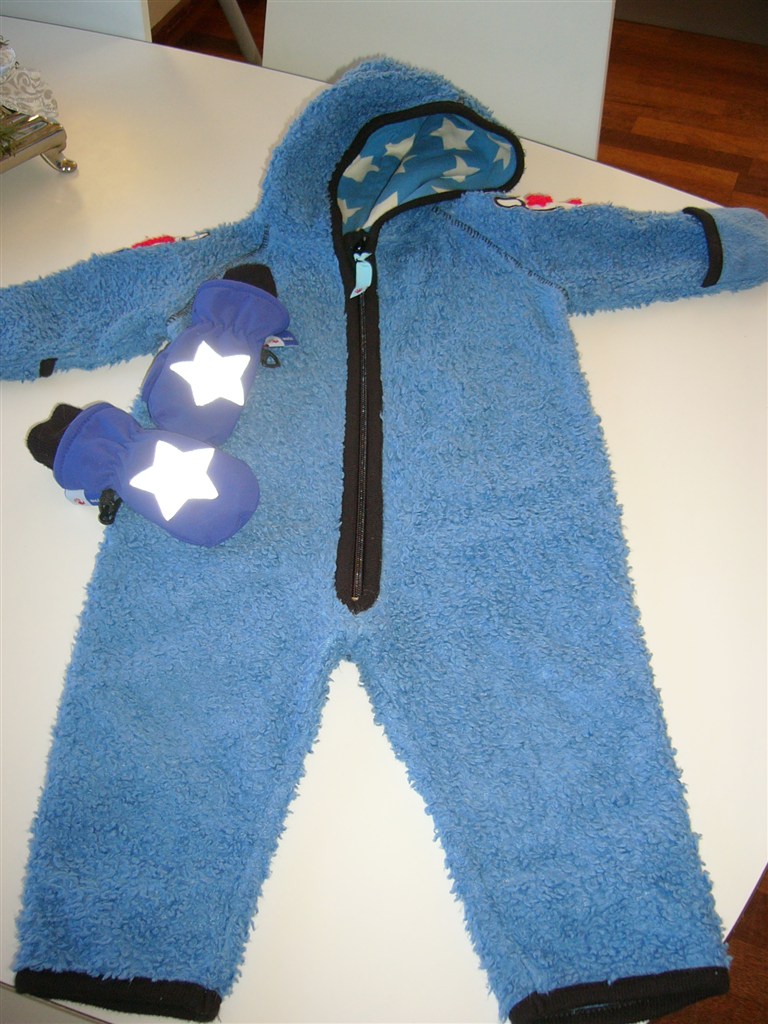 Lækker Molo-teddyfleece dragt - god men brugt - str 74. Dertilhørende Molo-luffer med tommel str 0-1 år. 165 inkl porto