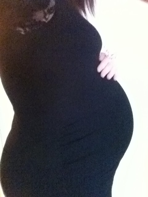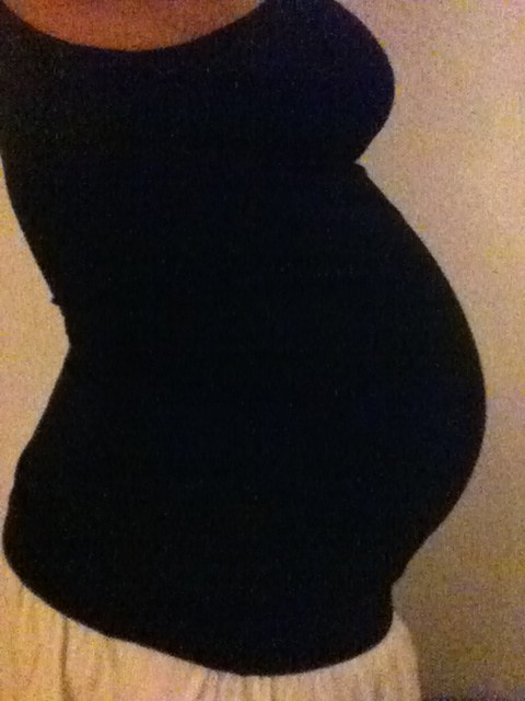 øhm det har jeg svært ved at vurdere ud fra de billeder... kan også være den lille bare ligger anderledes idag og derfor maven ser anderledes ud..