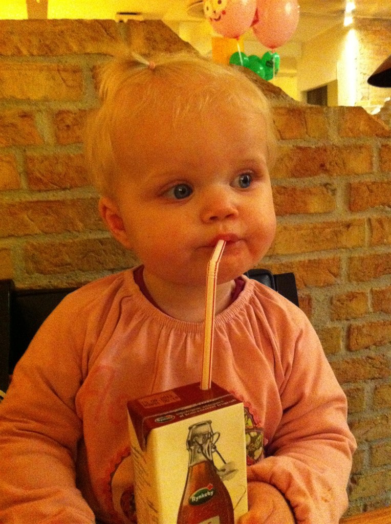 11. mdr. gammel. Richard kan nu selv drikke af kop. Det gør han til han ikke er tørstig mere. Så kan det resterende jo ligeså godt blive hældt ud!