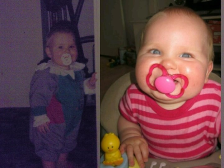 1: Mig som 1 år og Mille, da hun var 9 mdr.. Man kan se en vis lighed