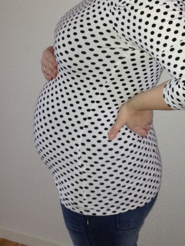 Maven startede ret spids og er nu blevet rund (skal lige siges at de runde hofter havde jeg også før jeg blev gravid
