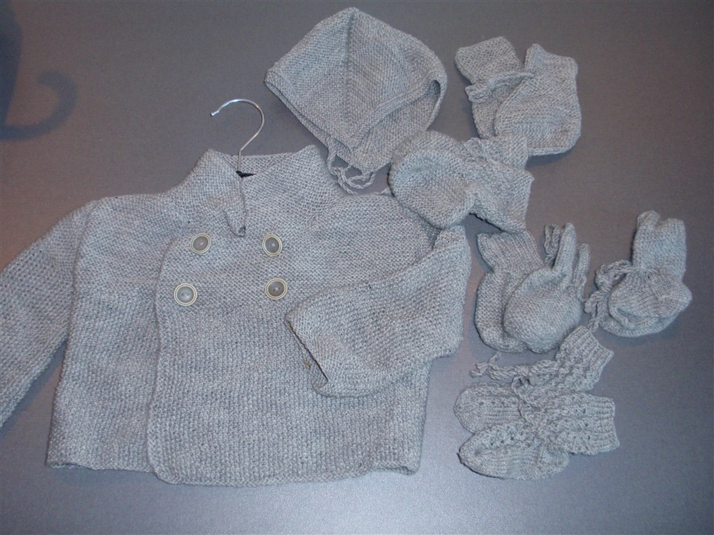 jakke med div, hue, luffer og strømper/sko str. ca 3mdr - 1 år.