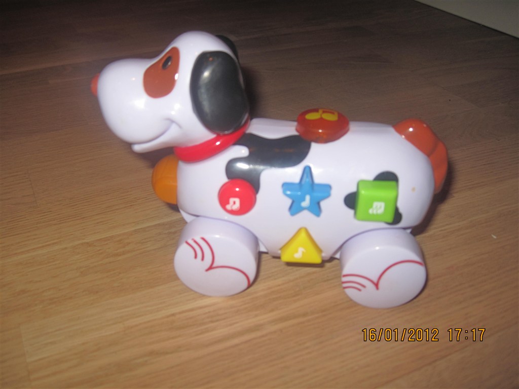 Billed 15. Man trykker på toppen hvor den begynder og spille musik og køre lige sås stille rundt. Der mangler dog den til at holde på batterierne.