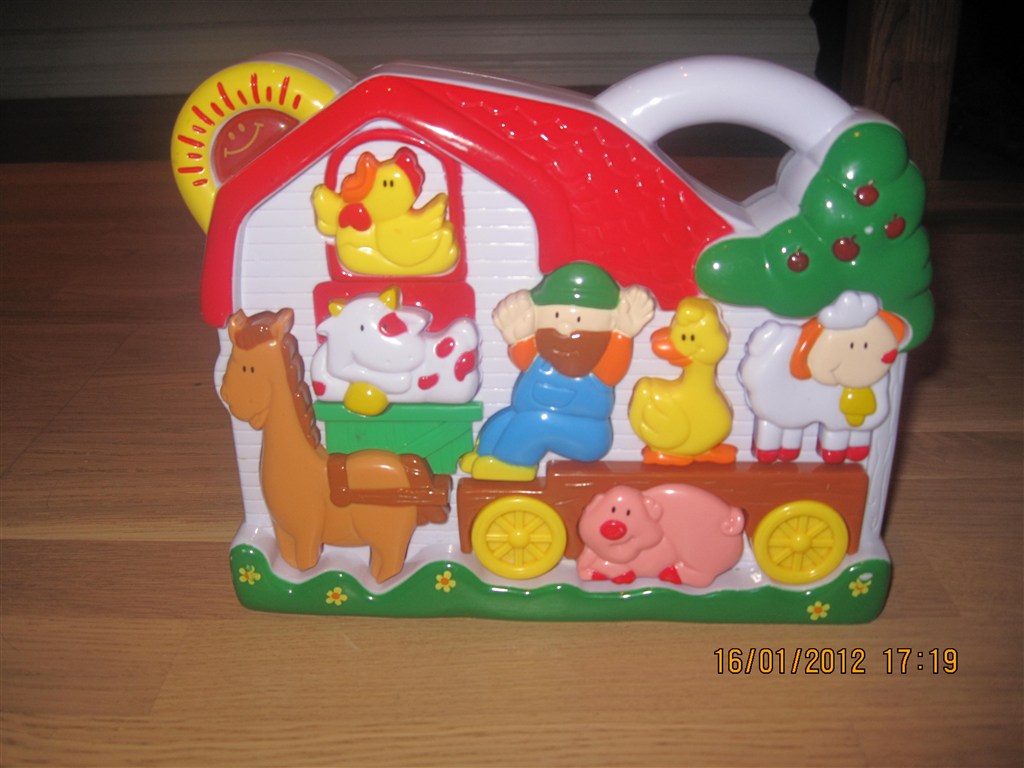Billed 13 - Bondegården. Spiller musik og sige lyde når der trykkes på dyr, mand og hjul.