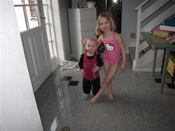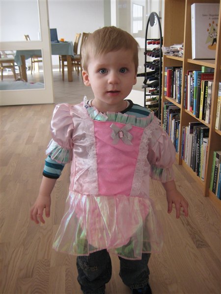 Sådan kom Elias gående i dag efter han havde været alene inde på Esthers værelse, hvor der er en kasse med fastelavnstøj