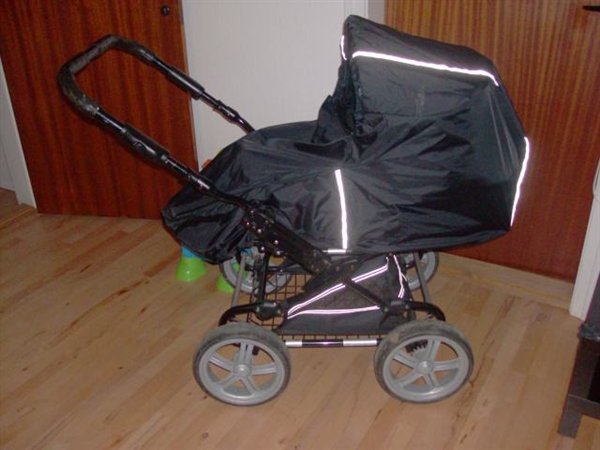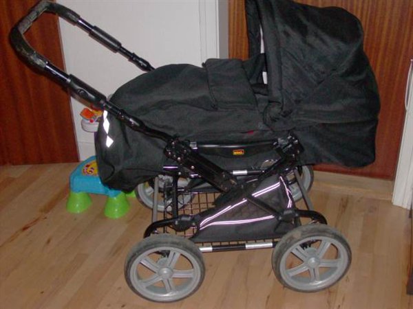 superfin brio klapvogn i sort, med lift.. med punkteringsfri hjul og fælge.....og forlæder....