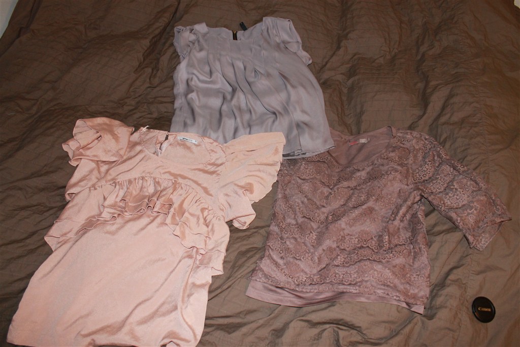 2: Bluser Lyserød Gina tricot 38, Blonde Saint tropez L og Grå/lilla Veromoda str. S