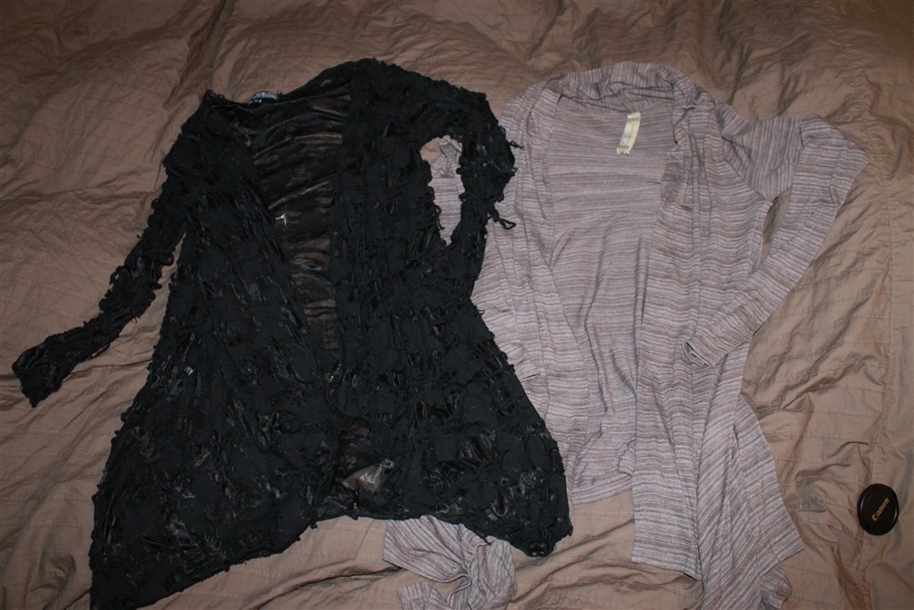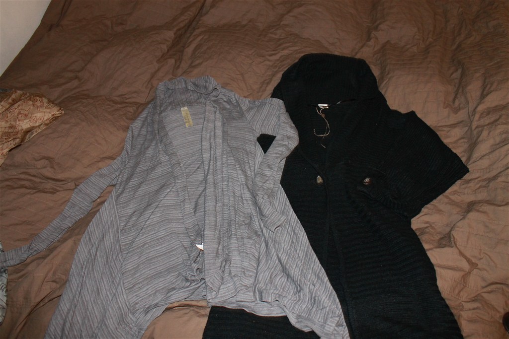 8:Grå cardigan Bershksa Str M, Sort cardigan Vila M