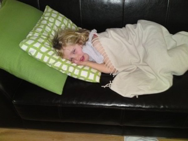 har lige hentet hende i børnehaven og hun har 39,5 i feber.. hun ligger bare på sofaen og ret så sløj..