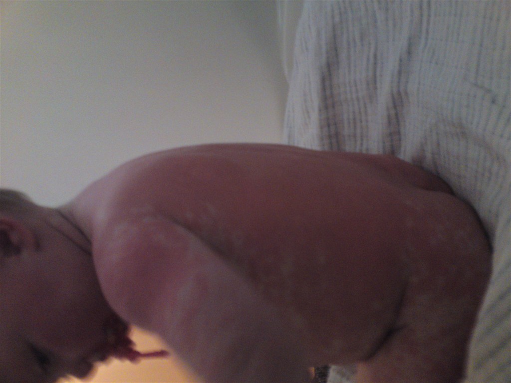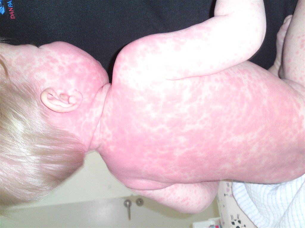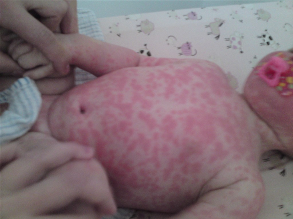 Da Laura var 9 mdr. gammel blev hun smittet med mæslinger! Hun havde ikke nået sin MFR vaccine endnu (15. mdr) og blev smittet af et barn i vuggestuen der ikke fulgte vaccinationsprogrammet og i øvrigt blev sendt i vuggestue med MÆSLINGER!!!!!