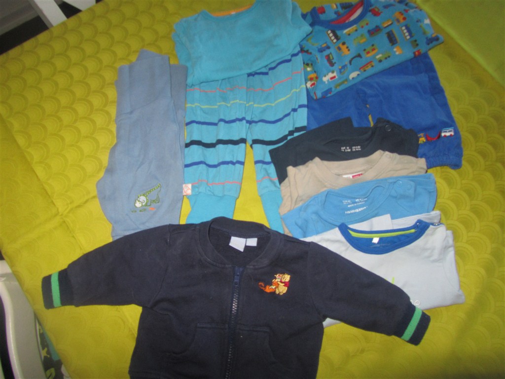 Name It sæt med blå bukser og bluse med busser og toge som matcher. str. 62 Godt men brugt 4 0 kr