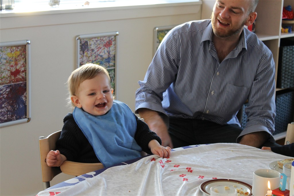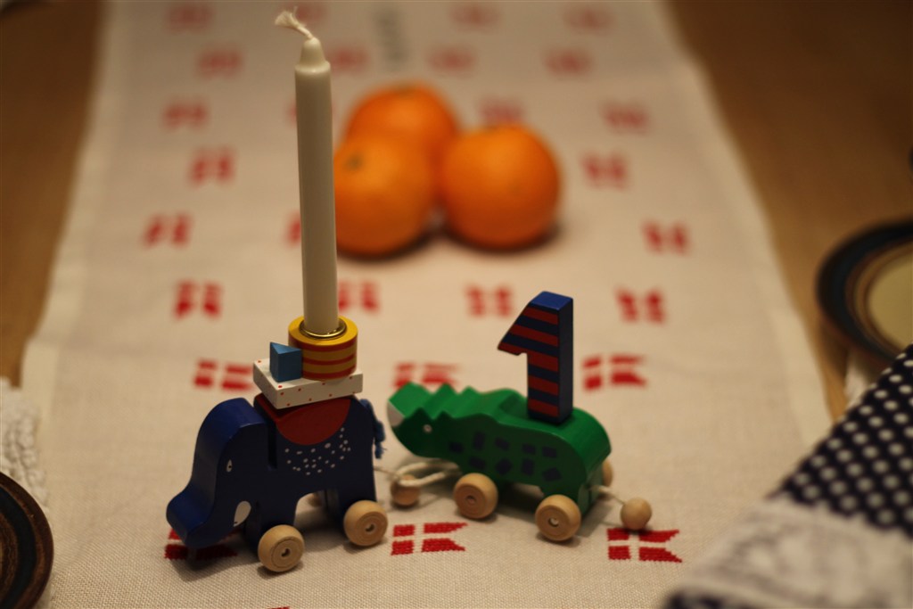 Jep. Så blev Richard 1 år. Som alle fødselsdag bliver jeg lidt melankolsk over tiden der er gået og små-religiøs (taaak fordi ingen igen er døde, syge, første år er gået godt osv). Derudover så ELSKER jeg fødselsdag. Derfor var fødselsdagsbordet allerede dækket i går aftes så jeg ikke glemte noget, og bolledejen i køleskabet og gaverne lagt frem.