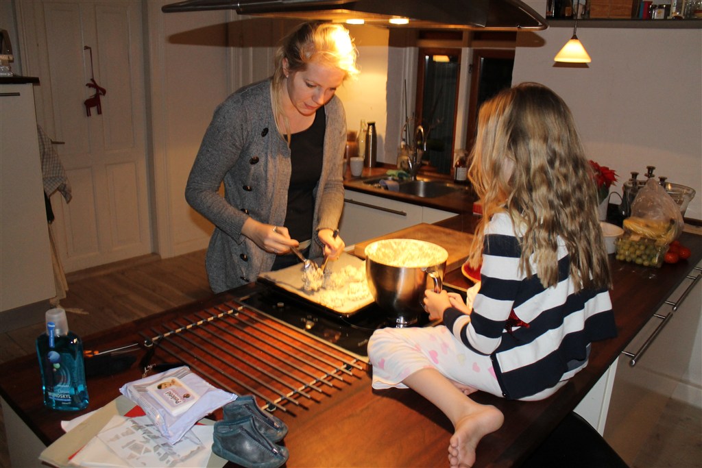 ), og søndag kommer de nærmeste søskende med familier og bedsteforældre, så vi bliver 26 der også til brunsviger kagemand, lagkage, muffins, fastelavnsboller og grovboller. Kartoffelsuppe med kylling til gå-hjem mad.