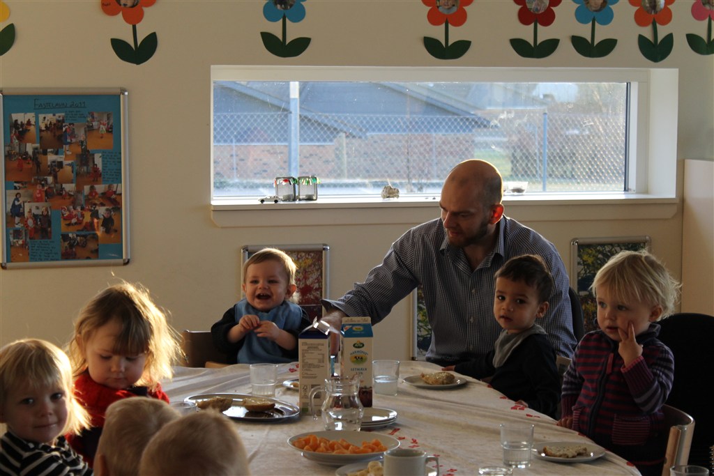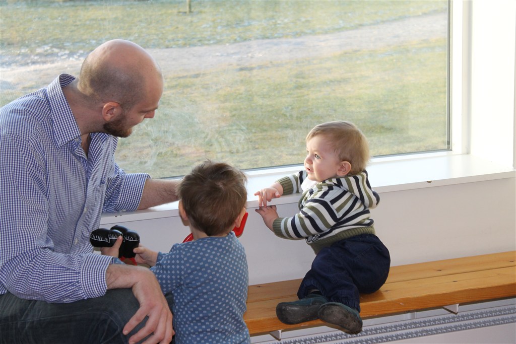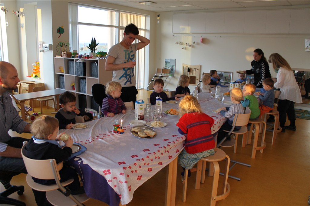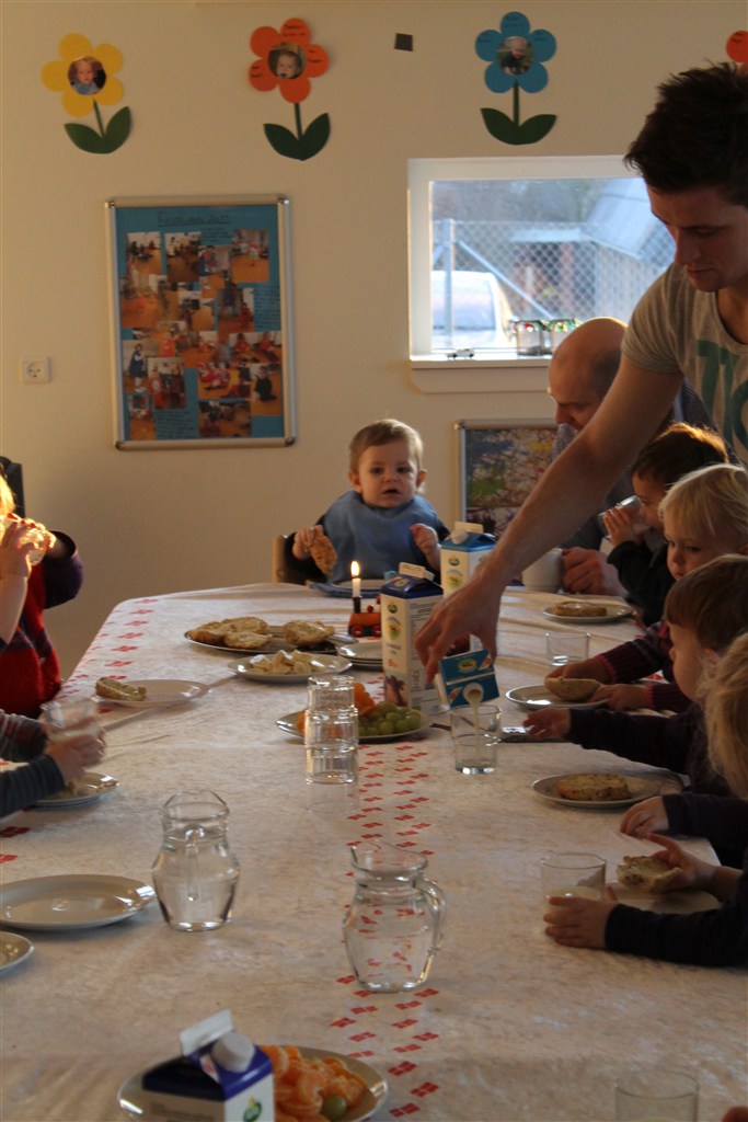 Herefter kørte vi til vuggestuen med grovboller og frugt. De havde dækket fint bord og ungerne fik mad og sang fødselsdagssang (igen til Richards store fryd), plus han fik en gave; et fint hæfte med billeder af sig selv i vs og sange de synger dernede og tegninger fra de andre unger. Her i eftermiddag har vi været ude og gå tur (pisse koldt trods høj sol) og her til aften kører vi til provinsfamiliernes kulinariske højborg, Bones, og får bøffer og hvad der sig dertil hører.