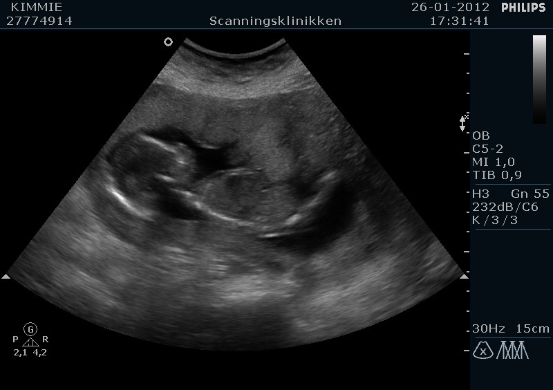 Jeg havde en tyk moderkage som lå ud mod maven og derfor var babs godt gemt, så det tog lidt ekstra tid for at 100 % at kunne identificere kønnet.