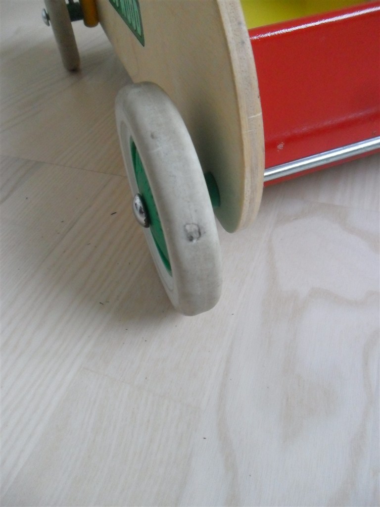 8+9: Bellino gåvogn; misfarvning på hjul kan skrubbes af! De er to mærker som vist på billede på alle hjul....