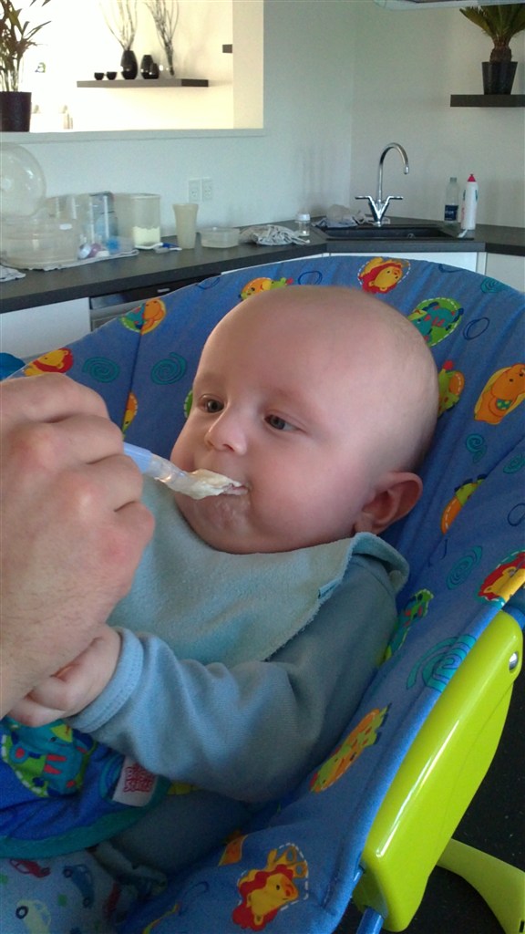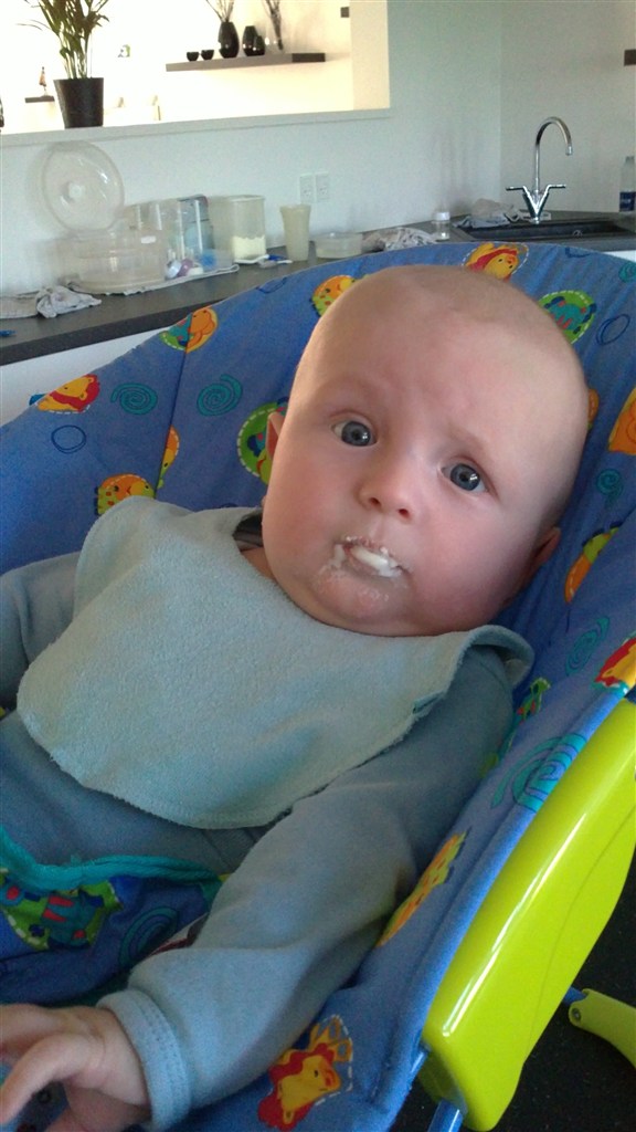 Vi er så småt startet på grød og han ELSKER det!! William er et rigtig snakke hoved og en MEGET glad og tilfreds dreng!